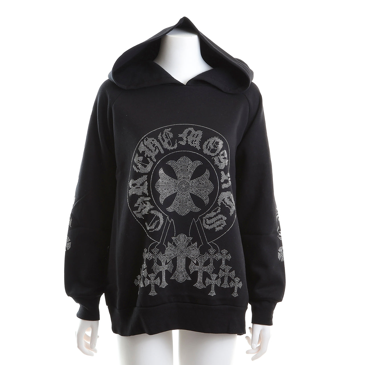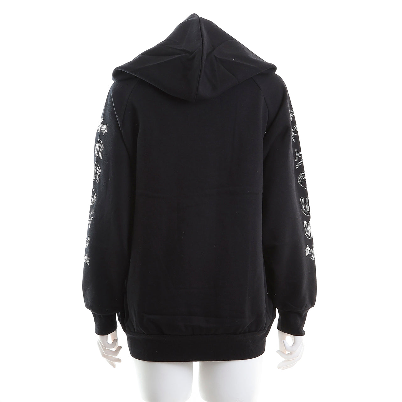 裏起毛 ラインストーン スタッズフーディー(サークルクロス、ブラック)