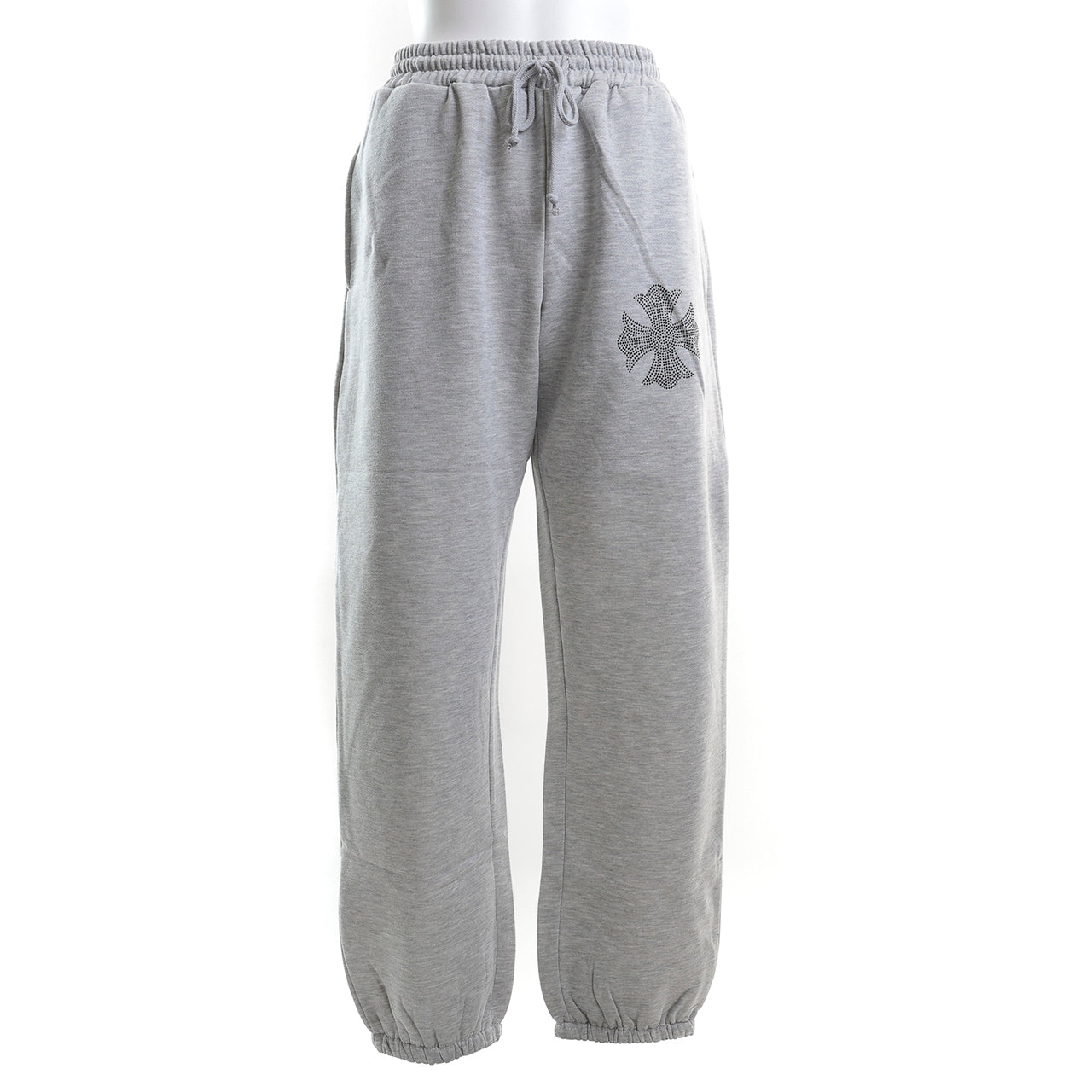 裏起毛 ラインストーン スタッズロングパンツ(クロス/グレー)