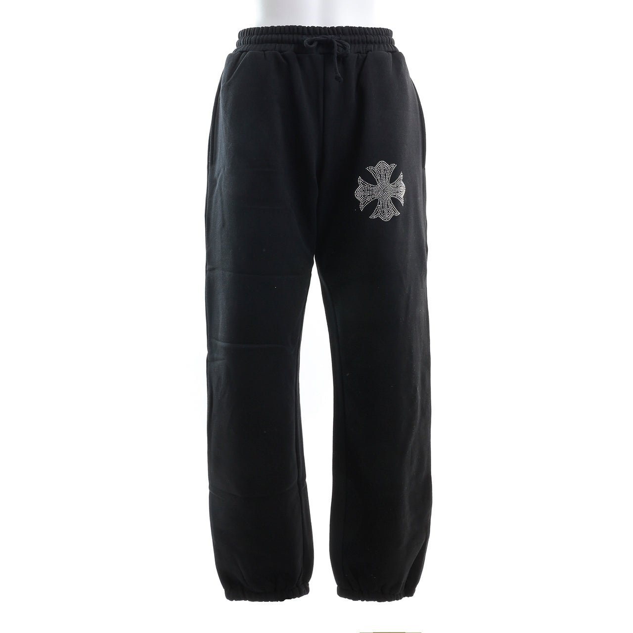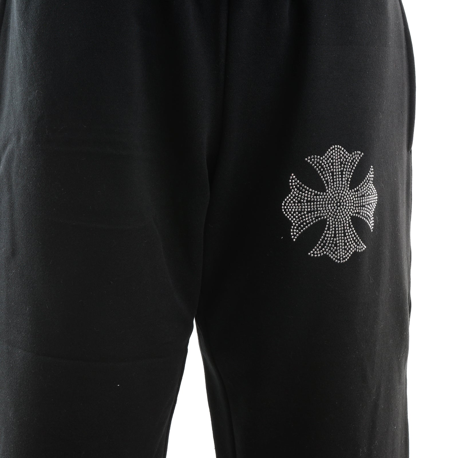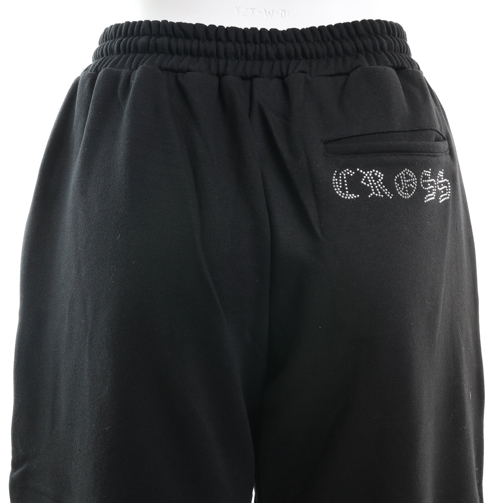 裏起毛 ラインストーン スタッズロングパンツ(クロス/ブラック)